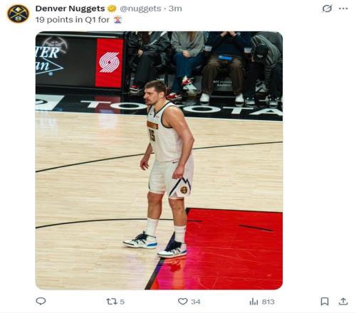對陣快船的比賽約基奇的進攻欲望非常差,全場比賽22中9+三分6中0+6失誤,才拿22分。但這場對陣開拓者他的戰意非常濃,首節12分鍾裏12中7,三分4中3,罰球4中2,拿到19分2籃板1助攻2搶斷,約基奇這個狀態就是想贏球。