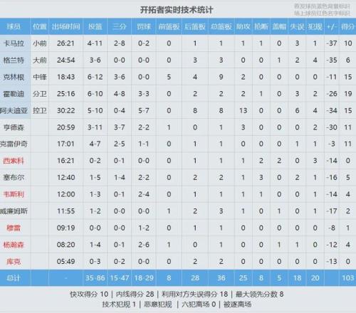 此役阿夫迪亞投籃10中5,三分4中0,罰球7中5,得到15分8籃板13助攻6失誤,正負值-30。約基奇打了29分鍾,投籃15中10,三分4中3,罰球11中9,狂砍32分9籃板7助攻4搶斷,正負值+40。其中正負值追平約老師生涯紀錄!