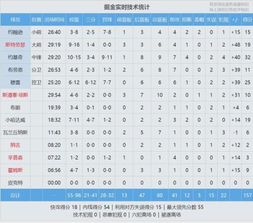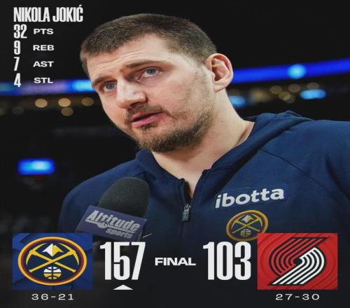 開拓者慘敗54分是隊史第六大分差,隊史最大輸球分差是65分(1997-98賽季59-124不敵步行者)。掘金狂勝54分,創造隊史最大贏球分差,此前紀錄是52分。單場157分不僅是本賽季聯盟最高分,也是掘金隊史客場得分紀錄!