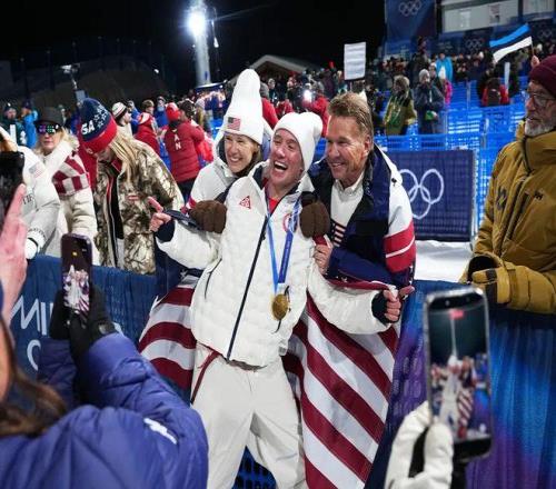 男子U型場地決賽,美國選手亞曆克斯·費雷拉在利維尼奧雪上公園笑到最後,在第三滑中,他以93.75分鎖定勝局,圓夢最高領獎台。在2018年平昌冬奧會獲銀,2022年北京冬奧會摘銅之後,費雷拉終於在本屆冬奧會嚐到了金牌的滋味。