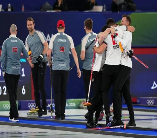 麵對9–1的巨大差距,挪威隊提前握手認負。最終,揚尼克·施瓦勒領銜的瑞士奪得男子冰壺銅牌。