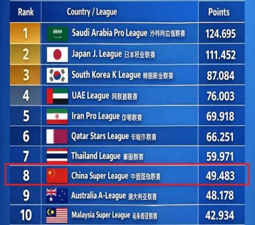 不久之前,亞冠精英聯賽階段,以及二級聯賽小組賽的結束,首階段各大足球協會的總積分也隨之出爐。