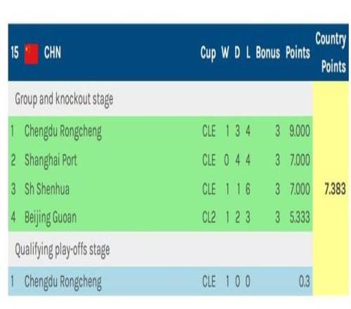 從(上圖)可以看到,中超Big3參加的亞冠精英賽和北京國安踢的亞冠二聯賽中,四隊加起來僅拿到7.3831個技術分。其中首次參加亞冠的成都蓉城拿到Big4中的最高分,上海申花和上海海港都其次,最低是北京國安。