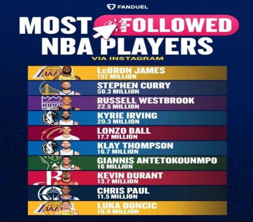 威少、歐文、球哥排3-5,克萊、字母哥、KD、保羅、東契奇也都進了前十,粉絲數不僅代表人氣,也是影響力的體現,咱就是說老詹這現役傳奇的號召力,真的沒人能打啊....