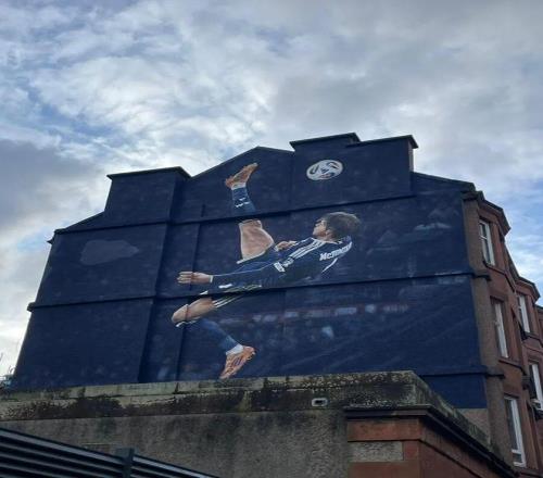 為此,蘇格蘭球迷在格拉斯哥的薩默維爾大道為他定製了一幅壁畫,所在地距離國家隊主場漢普頓公園球場僅幾百米遠,差不多就是一個球門球的距離。蘇格蘭足協和阿迪達斯合作完成這個作品,由全球街頭藝術團隊打造完成。