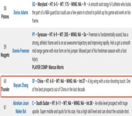 這也是張博源生涯首次被美國主流選秀網站預測關注,他們認為張博源身材高大,有出色的投籃手感,被認為是過去十年中國最出色的新秀球員!