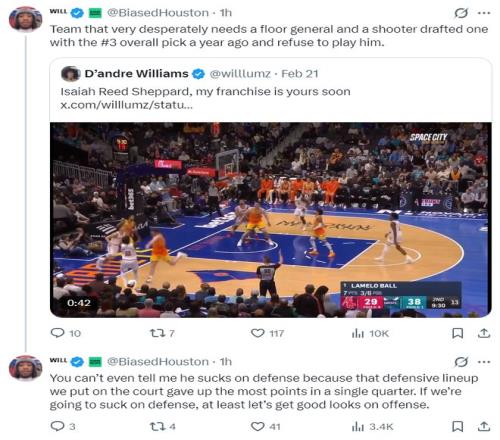 火箭2分惜敗尼克斯,而這場比賽火箭一度領先尼克斯達到18分之多,可在末節火箭18中5,命中率僅為27.8%且出現了9次失誤,他們幫助尼克斯打出33-15的攻防浪潮,尤其是最後5分鍾關鍵時刻球隊是接連出現低級的失誤,這場比賽引發了全美熱議。