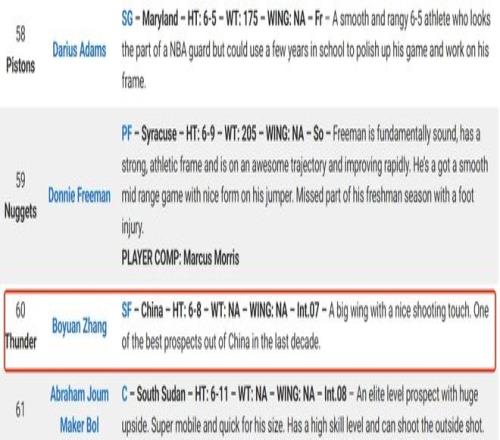 當然,預測隻不過是預測,在美國有很多身體天賦出眾的前鋒和後衛,張博源的天賦放在那裏就顯得有些平庸了,就算是第二輪被NBA球隊選中,也很難獲得穩定的出場時間。