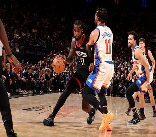 本場比賽中,火箭雖然輸掉了比賽,但是球隊的先發鋒線新星塔裏-伊森(Tari Eason)也算是盡力了。伊森全場出場34分43秒,投籃8中4,三分線外4中1,罰球2中2,得到了11分12籃板4助攻的兩雙數據,其中還包括了4個前場籃板,還有2次失誤和3次犯規,正負值為-7。伊森在進攻端的出手次數非常有限,他在這種情況下其實還是抓住了有限的機會得到了不少分數的,也算是展現出了自己全麵的得分能力了。不僅如此,他甚至在傳球和策應方麵的表現也是值得肯定的。伊森在防守端其實也是比較努力的,也是希望自己能夠在防守端起到作用的,可惜最後時刻他也確實是沒有辦法防住傑倫-布倫森(Jalen Brunson)的巨星球。總體來看,伊森也算是表現不錯了,可惜他還是沒有辦法幫助球隊取得勝利。