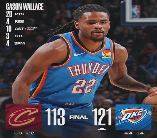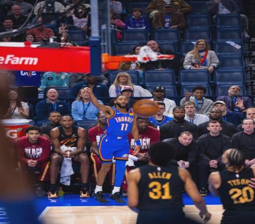 北京時間2月23日,今天早上結束的兩場常規賽:騎士客場113-121不敵雷霆,7連勝被終結;勇士主場128-117逆轉掘金。先說第一場,亞曆山大、傑倫-威廉姆斯和卡魯索等人休戰,雷霆二隊出戰,但他們三分命中率超過五成!