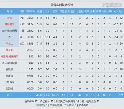 雷霆全隊三分球41中21,三分命中率高達51.2%,騎士三分球39中13,三分命中率33.3%。本場比賽四節比分如下(騎士在前):25-40、30-24、31-25、27-32。這是哈登騎士生涯的第一場失利,此前他在騎士的戰績是5勝0負。