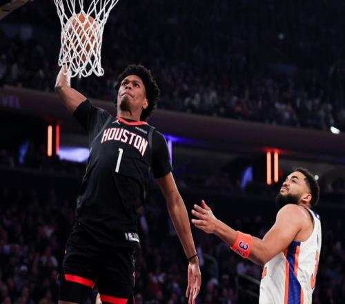 次節比賽,火箭進攻火力升級第二節轟下30+得分,且限製尼克斯連續兩節單節不足30分。尼克斯一波7-0攻勢擴大13分優勢,火箭一波7-2攻勢追分,阿爾瓦拉多三分命中。火箭之後以36-46落後,火箭連追4分,阿奴諾比暴扣,火箭一波10-2攻勢追平。唐斯三分命中,火箭連得4分,申京單節4中4得到10分,引領火箭單節33-26淨勝7分,上半場結束火箭54-53反超尼克斯。前兩節比賽,火箭三分15中7,杜蘭特13分、史密斯4中4得到11分與申京13+3+4;尼克斯三分13中5,阿奴諾比16分與唐斯11分,布倫森4中0僅得到2分。