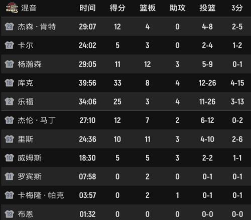 混音隊的進攻效率開始下降,樂福隻想著自己攻,不尋求配合,有點獨啊,楊瀚森沒有投籃出手機會。隻剩2分多鍾時,混音落後12分。楊瀚森摸不到球,樂福跟庫克輪番單打。比賽最後時刻,楊瀚森補扣得分。混音隊逆轉失敗,以113-118失利。