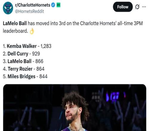 這讓三球生涯三分命中數來到873記,超越羅齊爾的864記升至黃蜂隊史第三,僅次於肯巴沃克(1283)和戴爾-庫裏(929)。