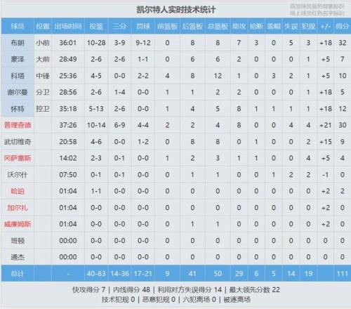凱爾特人替補合砍45分,普理查德獨得30分4籃板8助攻,湖人替補加起來25分!傑倫-布朗28投10中,砍下32分8板7助3斷,他跟普理查德合砍62分。湖人東契奇25分5板3助、詹姆斯20分4板5助2斷、裏夫斯15分7板2助2斷。