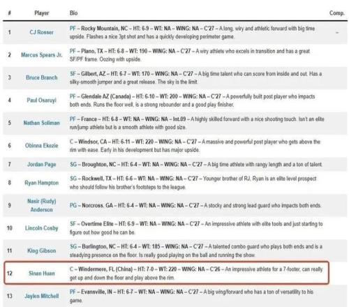 對了,張博源已被多家美國權威體育媒體評為四星高中生,其中在選秀網站Rivals發布的2026屆全美高中生最新排名中位列全美第25,成為該榜單排名最高的中國球員。