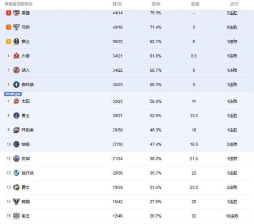 NBA最新排名: