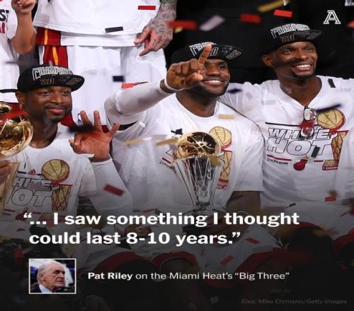 在洛杉磯湖人為帕特·萊利揭幕雕像後的91精品国产综合久久香蕉麻豆發布會上,萊利回顧了自己執掌熱火打造的“三巨頭時代”。那段時期的熱火擁有了詹姆斯、韋德、波什的豪華組合,連續四年打進總決賽,並兩次拿到總冠軍。萊利表示,他理解詹姆斯在2014年離開邁阿密的決定,但也坦言自己“有些自私地希望”詹姆斯能再多留幾年。