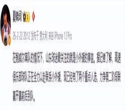 至於小外援?根據山東媒體人夏曉司的報道,山東男籃俱樂部已鎖定兩名重點目標,正全力推進簽約,目標明確:第二階段開賽前,必須到位。