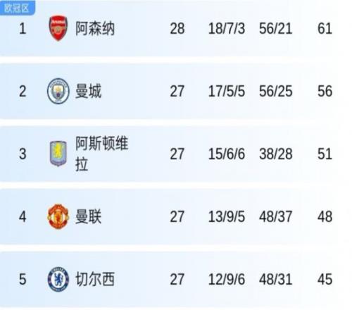 此役過後,曼聯27輪積48分,領先第5名切爾西3分,距第3名維拉3分。維拉近期4場聯賽僅1勝,切爾西和利物浦還在多線作戰。