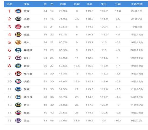 今日比賽後火箭、掘金排名互換,其他西部球隊排名不變。