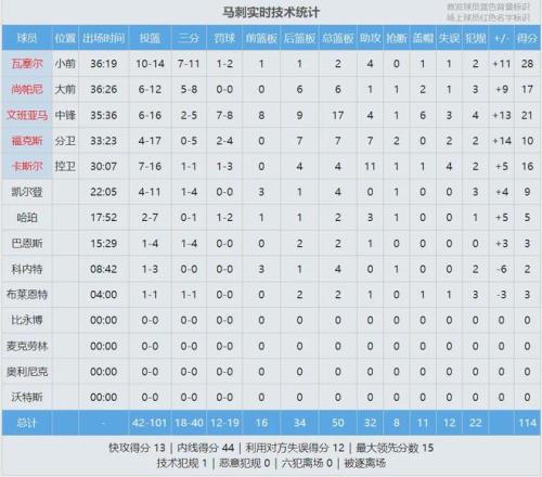 兩隊核心球員都被重點盯防,文班亞馬半場9中2僅得7分6籃板3失誤。坎寧安11中4拿到10分6籃板2蓋帽3犯規,犯規數是個隱患。下半場開始,福克斯追著坎寧安打。第三節剛打了1分多鍾,福克斯造成坎寧安個人第4次犯規。