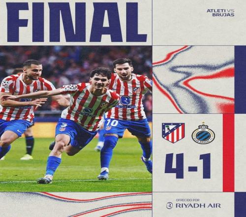 賽後根據Stats Foot的統計,此次麵對布魯日兩回合打進7球(客場3-3,主場4-1)也讓馬競創造了他們隊史歐冠淘汰賽兩回合比賽的總進球數紀錄。