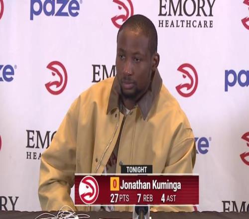 在老鷹生涯首秀中,庫明加替補出戰24分鍾,投籃12投9中、三分4中3轟下27分7籃板4助攻2搶斷,在場正負值為+16,得分創賽季新高,比賽中,他多次咧嘴大笑,顯然非常開心。