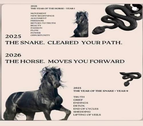 而那張中國傳統生肖圖片上的祝福意思為:“2025蛇年,為你清理道路。2026馬年,願你一路向前。” ​​​