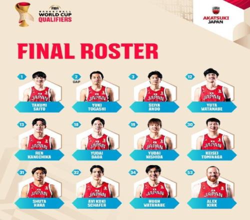 作為對手,日本男籃也是公布了他們的12人名單,最值得關注的就是他們的歸化中鋒使用了年紀更大、實力更弱的柯克,沒有用更年輕也更厲害的霍金森。