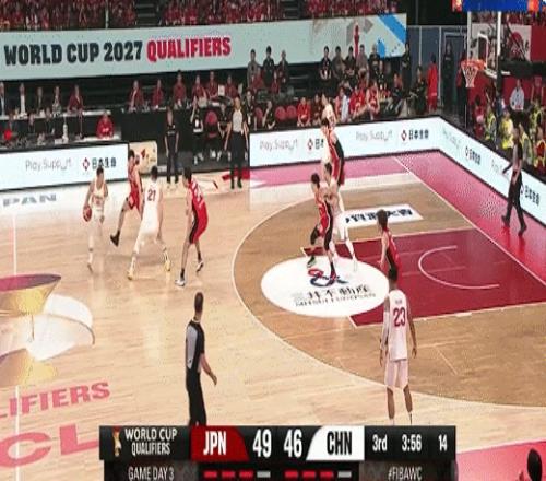 高詩岩借掩護三分追平比分!中國男籃49-49日本