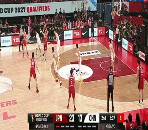 第二節日本男籃西田優大拿下8分,中國男籃趙睿拿下6分,半場結束日本男籃47-33領先中國男籃