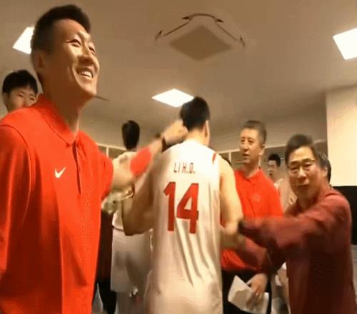 賽後,中國隊在更衣室瘋狂慶祝逆轉,全隊擊掌,趙睿等隊員非常興奮,主教練郭士強十分開心,不過胡金秋安靜地坐在一旁。