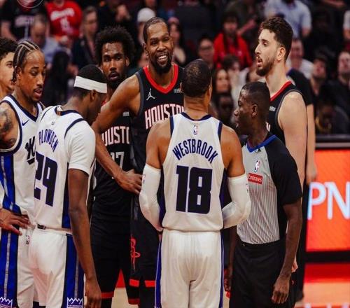 首節比賽,威少一個人17分,但國王隊的其餘球員合計隻有5分,全隊單節22分。火箭隊隨便在外線傳導幾下,就出現了大量的空位。而且火箭隊一開始也沒有給多少防守強度,一旦他們認真起來,國王隊就直接崩盤了。眼瞅著,分差奔著30+去了。威少不甘心啊,所以一度上頭,對著申京強硬犯規。正巧又碰到了趕來護隊友的杜蘭特,兩人順勢互噴。威少不服氣,或者說不願意,不願意看著自己所在的球隊被對手戲弄。而杜蘭特,知道兩隊的實力差距,所以隻是笑著看威少。比賽結果也是如此,談笑間,杜蘭特輕鬆得到21分,率隊擊敗國王,而內線的申京則是26分13籃板11助攻大號三雙!