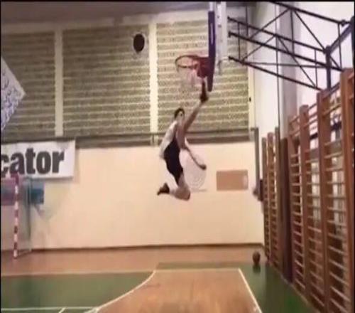 除了能跑,謝什科還有驚人的跳躍能力,那是他通過練習籃球獲得的技能。一段古早視頻記錄下14歲的謝什科高高躍起,將卡在籃框上的籃球踢下的畫麵。