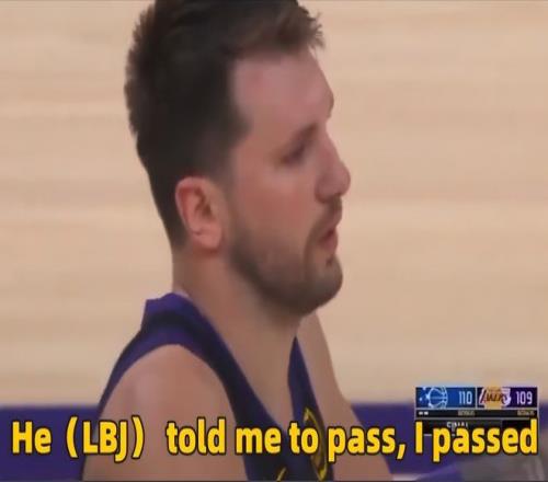但是從慢鏡頭來看,東契奇出現大空位時,自己猶豫了,當時詹姆斯並沒有要球,而是詹姆斯被兩人包夾以後,處理不了了,詹姆斯才在旁邊要球,準備接應的,所以這球怎麽也怪不到詹姆斯,東契奇出現大空位時,詹姆斯甚至還在邊線之外。賽後詹姆斯自己也在接受采訪時疑似對東契奇的處理不滿,他說:盧卡在最後時刻做出了選擇,無論如何,他選擇了,那一刻很快,沒法想太多,他似乎有點失去平衡,但老實說,他球傳過來時,我也失去了平衡。