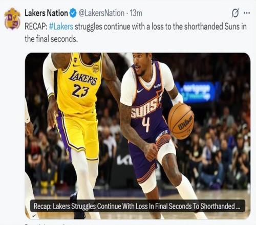 北京時間2月27日,太陽主場113-110準絕殺湖人,此役後湖人吞下三連敗,更為慘烈的是湖人連續兩場比賽被對手準絕殺。此役湖人一度領先13分之多,可第三節詹姆斯下場2分鍾就被打10-0崩盤,末節湖人艱難抹平分差,隻可惜小奧尼爾0.9秒完成了準絕殺的三分。