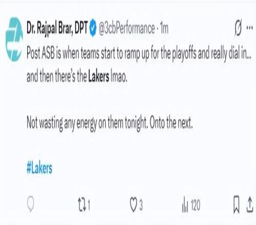 賽後專家Rajpal 寫道:在常規賽的最後階段各隊都在為季後賽做準備,全力以赴。。。。而湖人真實讓人捧腹大笑。香蕉视频网址不該對他們抱有期待,接著往下走吧。