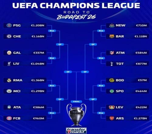 相比之下,巴黎、切爾西、利物浦、皇馬、曼城、拜仁齊聚上半區,慘烈程度可見一斑。可以說很多比賽堪稱是“提前上演的決賽”。而下半區的巴薩和阿森納則顯得從容太多,他們不僅沒遇到太強的對手,也有博德、葡體這樣實力一般的對手“相伴”,確實輕鬆很多。