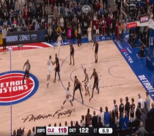 活塞詹金斯運球還沒過半場,泰森故意犯規,詹金斯順勢3分出手,裁判給了活塞三次罰球。