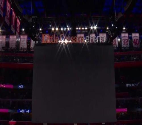 第三節還剩7分24秒時,比賽正膠著,活塞發動聲波進攻,現場喇叭炸了狂響不停,球迷捂耳觀賽,比賽被迫中斷。
