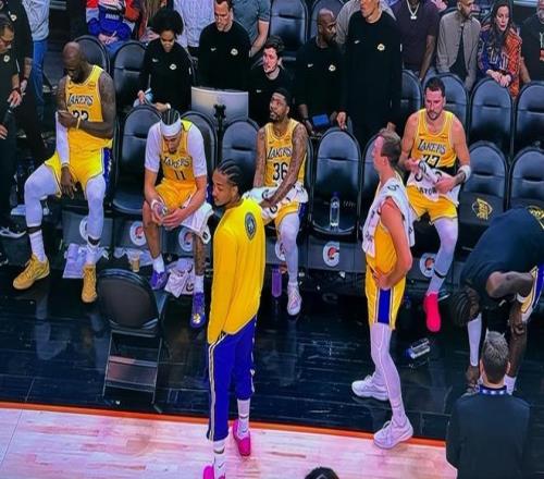 但是還有兩個細節鏡頭,一個是當時坐在板凳席上的時候,第四節湖人全隊死氣沉沉,而且詹姆斯和東契奇故意坐在了板凳的兩邊,中間的所有隊友保持沉默,一句話不敢說。他們不知道說話會得罪哪個大佬,偏向詹皇盧卡肯定不開心,你偏向東契奇,詹姆斯可是很記仇的。他們手足無措,顯得非常的無語,中間這三個人一句話都不敢說,一個鏡頭勝過千言萬語了。