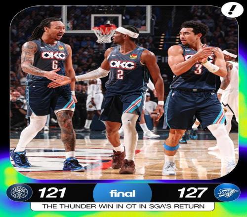 主要原因還是雷霆的空位三分能夠回應了,第四節開始階段的多爾特、後麵的麥凱恩、卡魯索都在投進空位三分,加時賽以賽亞-喬也站了出來。加時賽亞曆山大甚至出於保護原因沒有打,切特和卡森站出來扛起了球隊,展現了雷霆作為衛冕冠軍的底蘊和氣質。