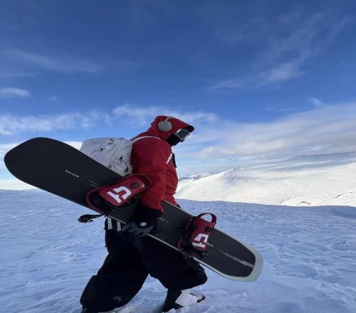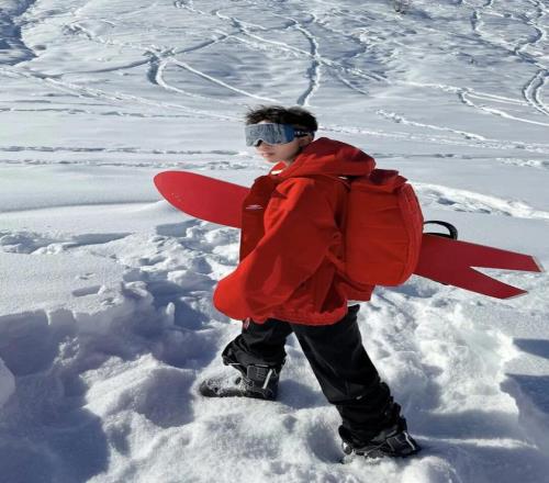 茫茫雪場裏中的 “一點紅”,熱烈如火,在純白天地間肆意生長,青春本就該自在馳騁、大膽耀眼。