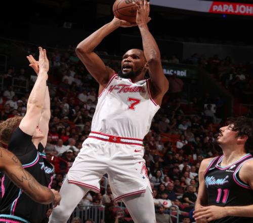 因為小賈傷停,這場比賽火箭隊引以為傲的籃板球都沒有任何優勢,兩隊的籃板球都是47個,火箭最強的前場籃板也隻比熱火多1個,申京因為一直遭遇犯規困擾也未能幫KD減壓。