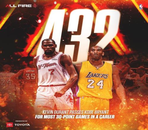 杜蘭特過去六場比賽四次拿到30+,場均35.5分鍾,拿到29.3分、6.0個籃板、5.8次助攻,投籃命中率54.2%,三分球命中率37.2%,罰球命中率96.8%。