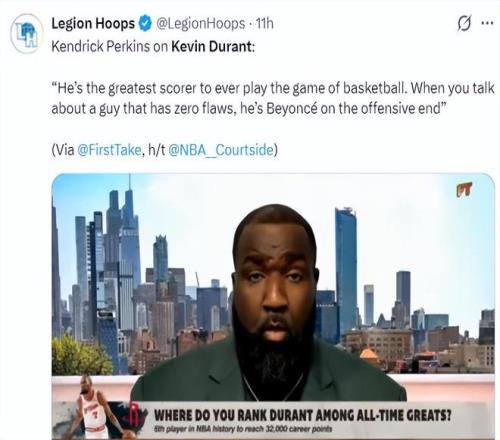 帕金斯在ESPN的直播中說道:杜蘭特是籃球運動史上最出色的得分手之一。