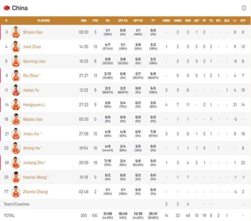 和上一場同日本的比賽一樣,中國男籃再次體現出人多勢眾的優勢,朱俊龍、胡金秋、趙繼偉、趙睿、賀希寧5人得分上雙,而第二次代表中國隊出戰的李弘權更成為籃板奇兵,一人搶下4攻7防11個籃板,率領全隊在籃板球上以46比31大勝。而朱俊龍在三分線外6投5中砍下19分,帶領全隊打出44.83%的三分球命中率,壓倒了同樣手感火熱、三分命中率高達40%的對手。