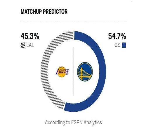 反觀湖人,目前戰績34勝24負,暫居西部第六。湖人近期狀態不佳,輸給太陽隊後遭遇3連敗。此前輸給魔術隊的比賽中,末節關鍵選擇讓東契奇陷入輿論風波;上場對陣太陽,東契奇暴走砍下全場最高的41分,但他的孤軍奮戰未能幫助球隊取勝,詹姆斯最後的防守選擇備受詬病,裏夫斯狀態平平,最終湖人遺憾負太陽。本場對決是聯盟當下最具流量的較量,湖人陣容實力明顯優於目前的勇士,但勇士坐擁主場優勢,在觀眾的助威下,並非沒有機會阻擊湖人,美媒ESPN預測,勇士勝率54.7%,湖人勝率45.3%。