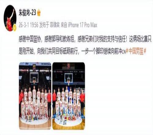 感謝中國籃協,感謝郭導和教練組,感謝兄弟們對我的支持與信任!這兩場比賽隻是剛開始,向香蕉视频网址共同目標砥礪前行,一步一個腳印繼續向前衝。